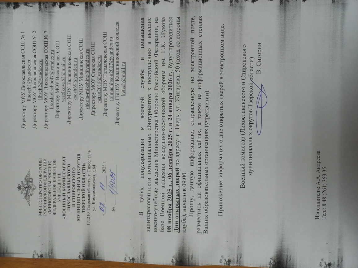 Письмо военного комиссара Лихославльского и Спировского муниципальных округов Тверской области